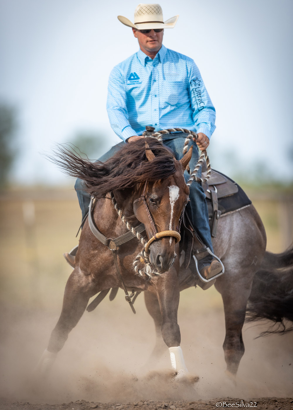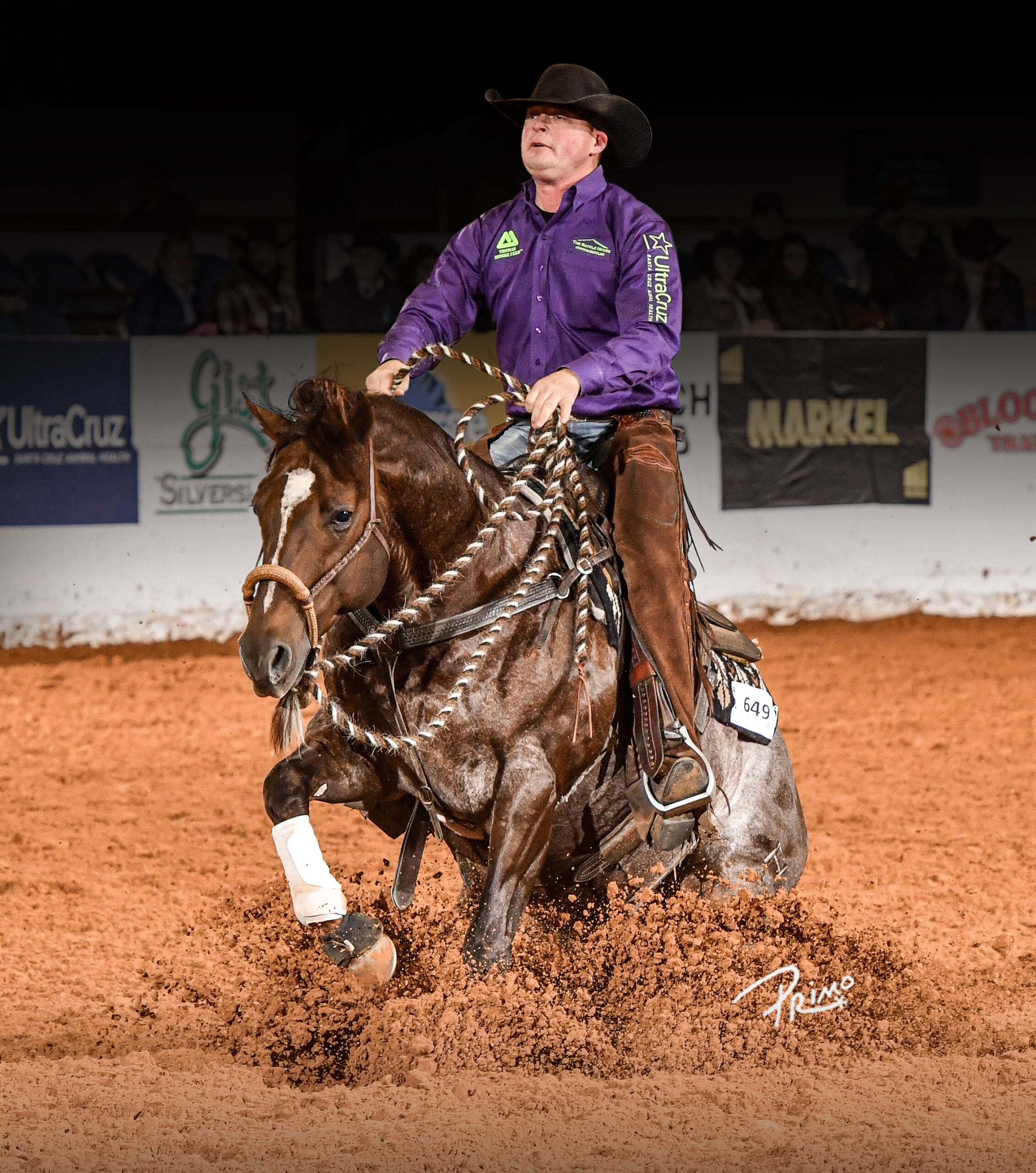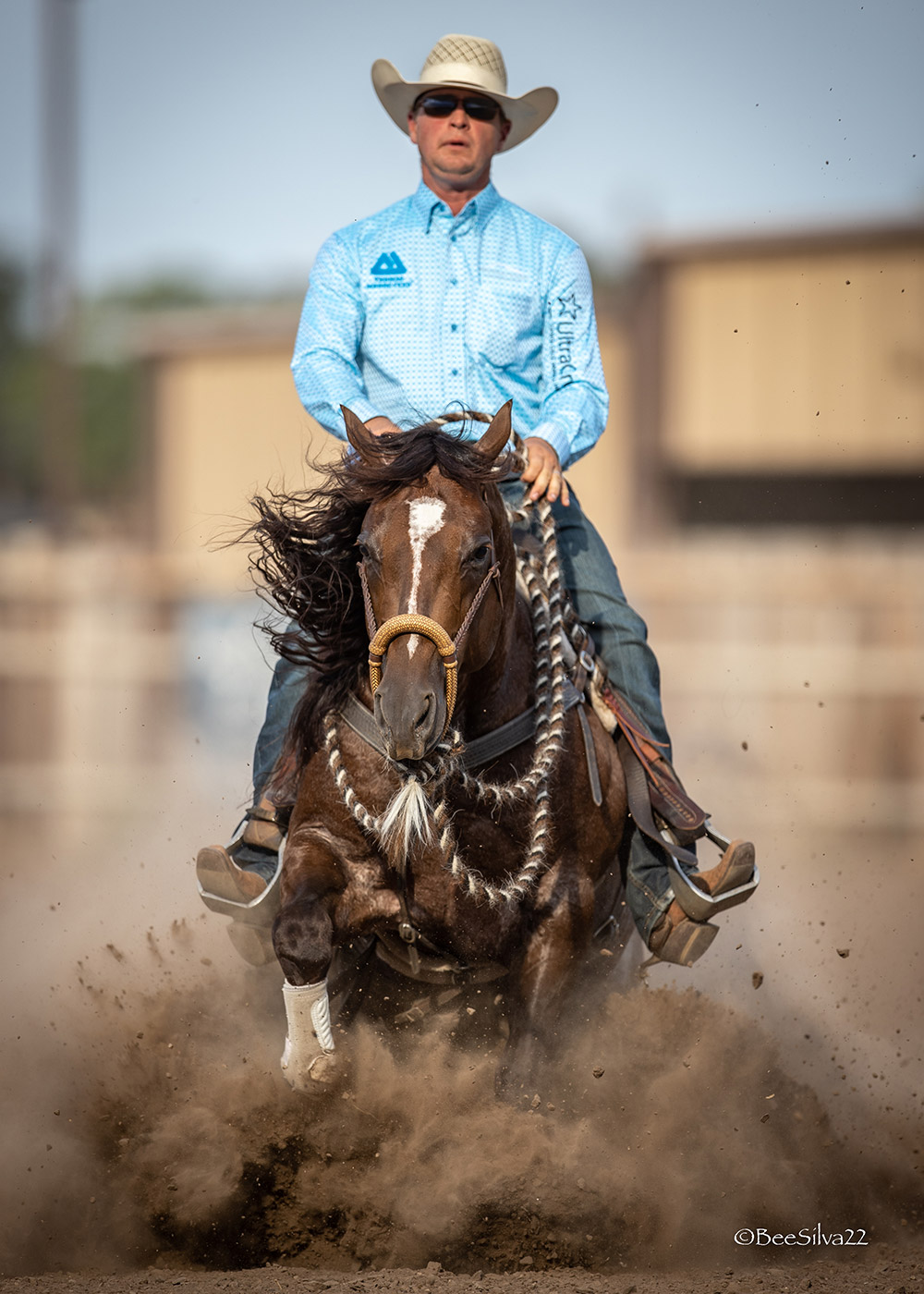 While Volmer says that often the 4-year-old year after a successful futurity season can be tough on a young horse, that is not the case with Ricato Suave, who was bred by Flag Ranch LLC.